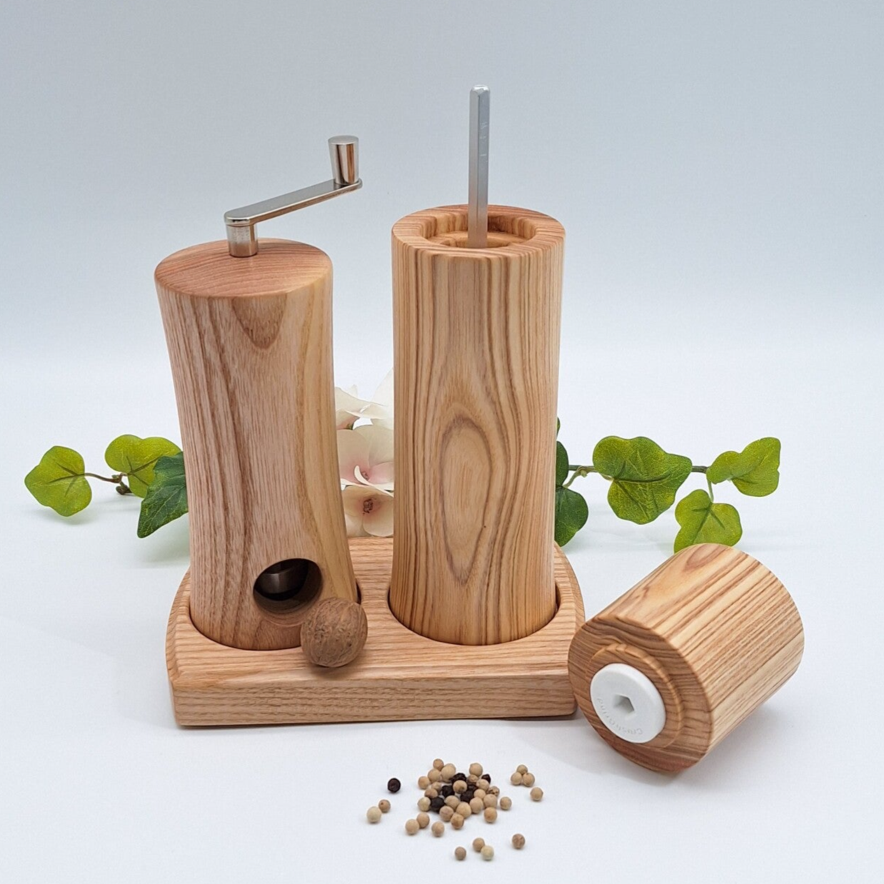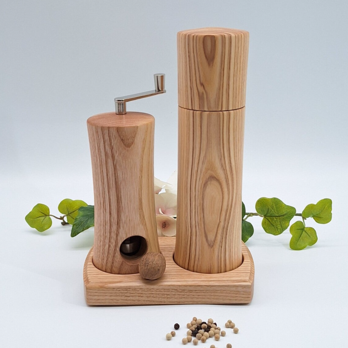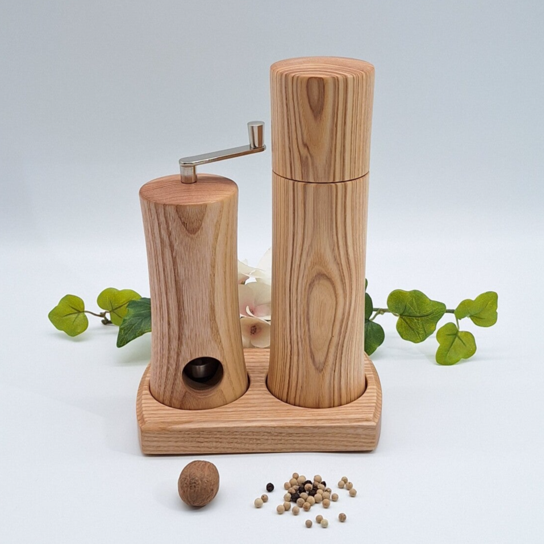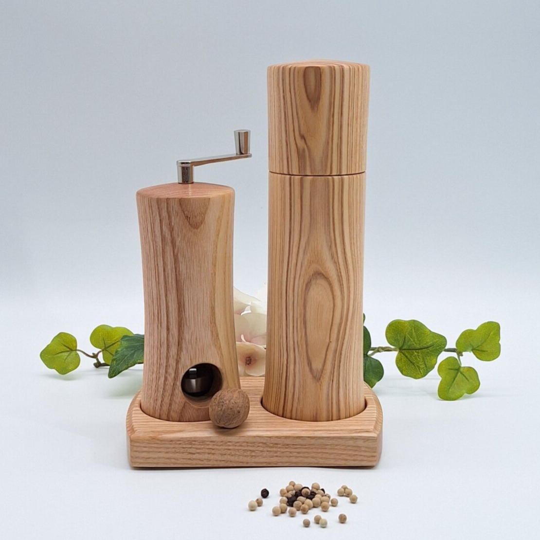 Ich biete Ihnen hier eine Gewürzmühle und eine Muskatmühle aus Eschenholz im Set an.