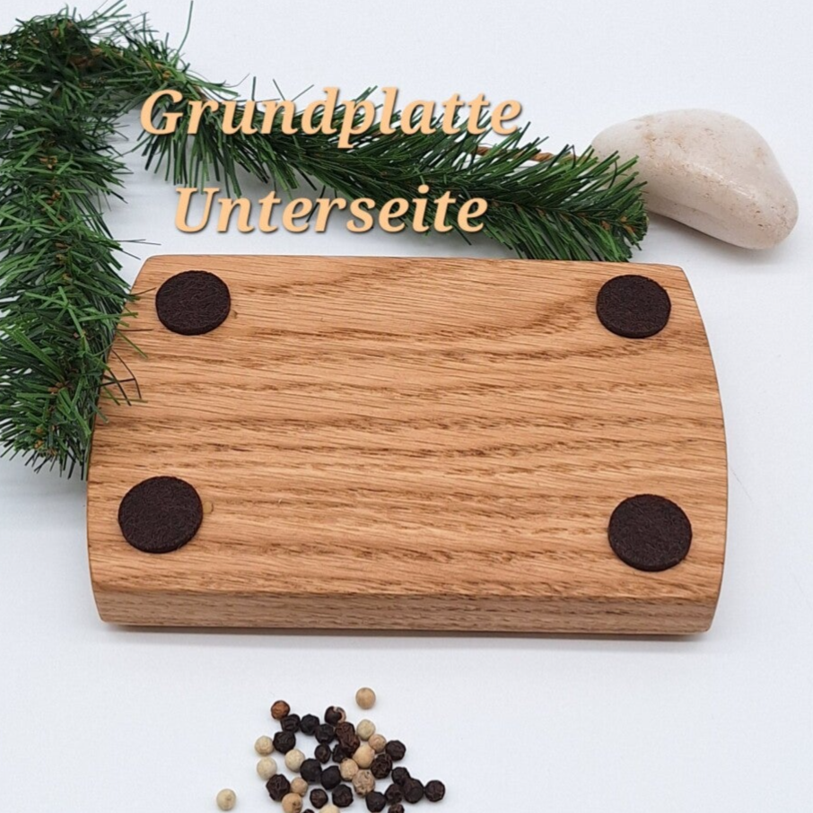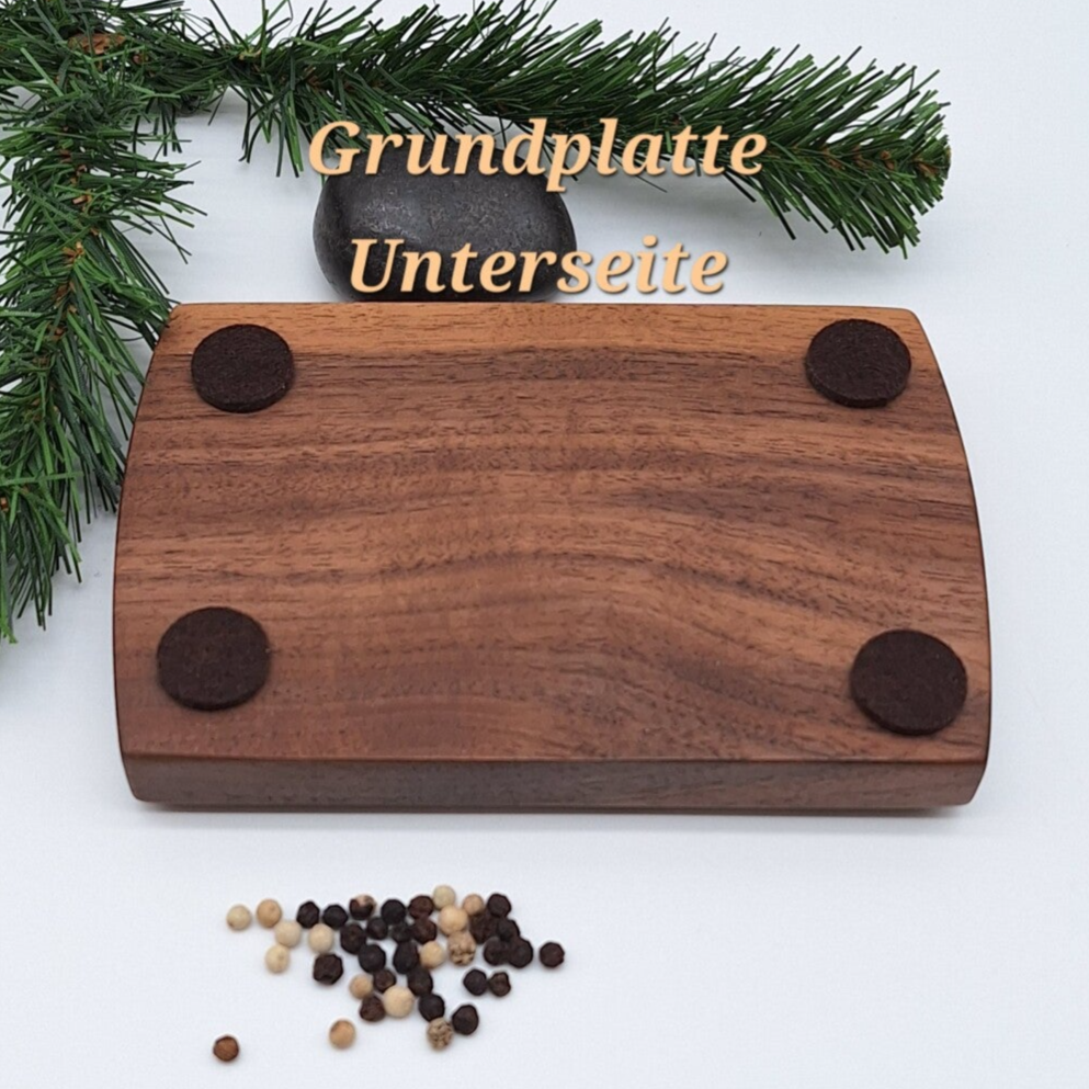 Für einen sicheren Stand sorgt eine Grundplatte aus Eschenholz bzw. Nussbaumholz, die ich ebenfalls hergestellt habe.